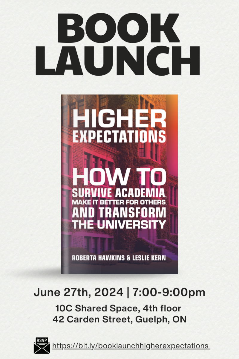 Please join us in Guelph on June 27 for the launch of Higher Expectations: How to Survive Academia, Make it Better for Others, and Transform the University by Roberta Hawkins and Leslie Kern